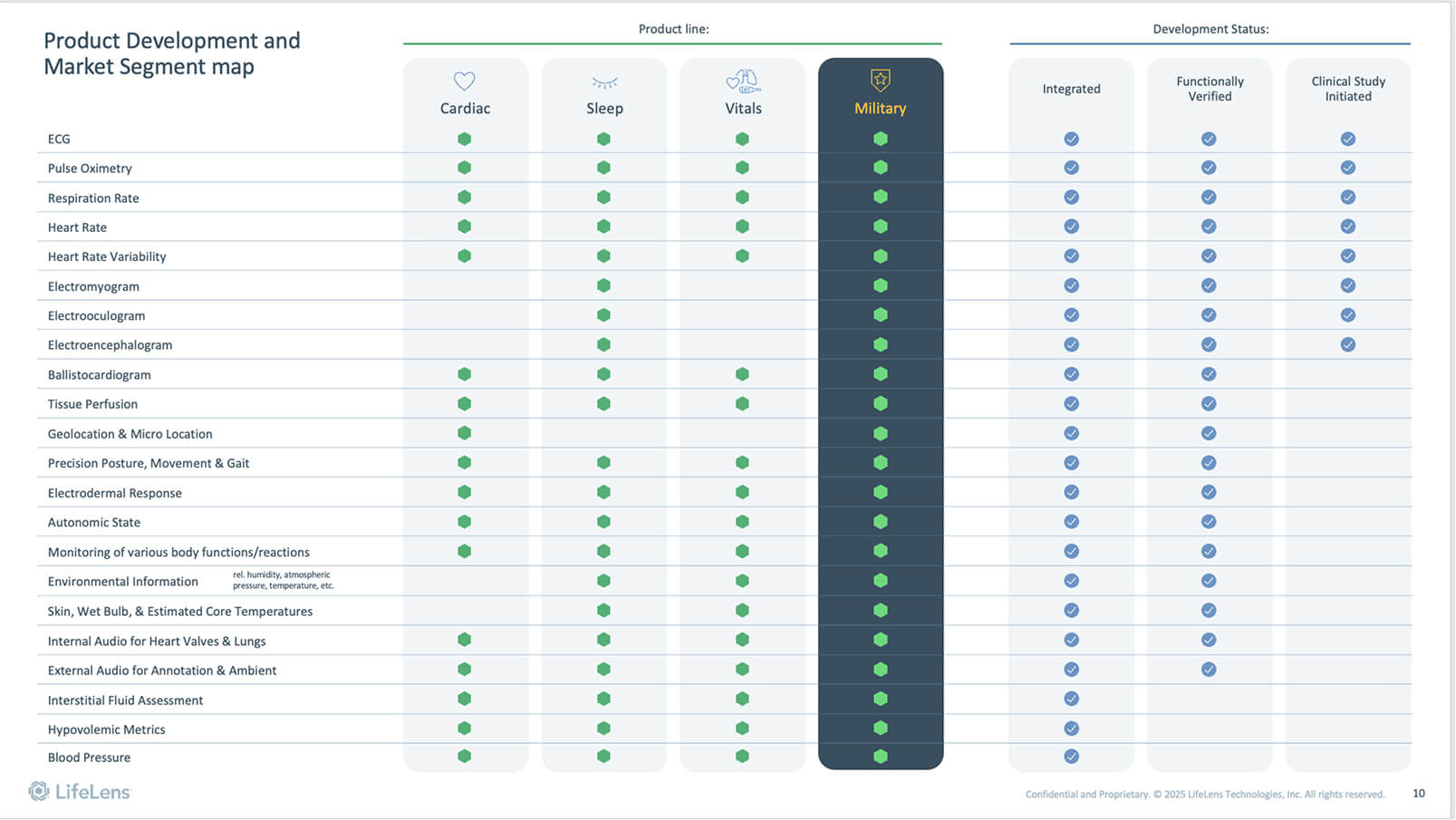 The technology that drives the comprehensive monitoring platform of LifeLens has been tested by the U.S. military in over 40 fielding events since 2021. During this time, it has helped to monitor clinical-grade vital signs, mitigate heat and musculoskeletal injuries, and determine unit readiness.